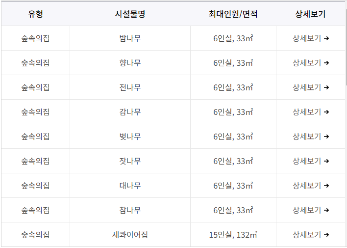 대전 장태산 자연휴양림 이용요금 바로가기 | 시설 및 이용안내