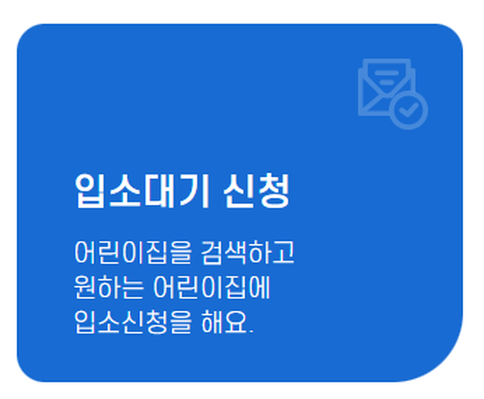 - 어린이집 검색 및 예약 지역, 운영형태, 보육시간 등 다양한 조건으로 어린이집을 검색하고 입소 대기 신청까지 할 수 있습니다.
