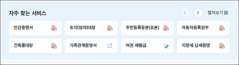- 주민등록등본, 가족관계증명서 등 주요 증명서 발급 및 열람