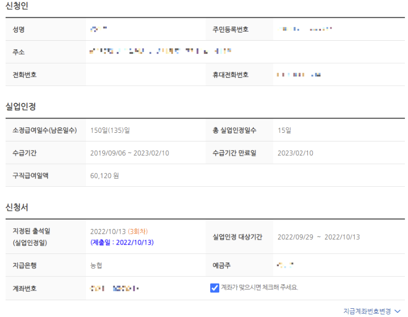 - 구직급여 지급 (수급자격 인정일로부터 7일 이내 최초 지급)