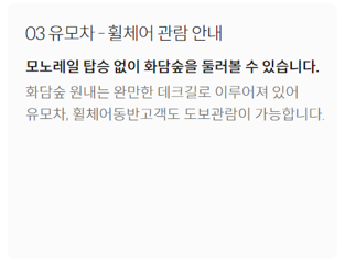 - 유모차/휠체어 동반 고객도 도보 관람 가능
